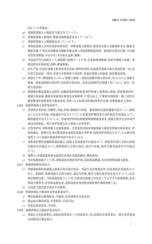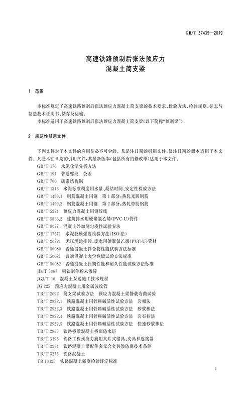 GB/T37439-2019高速鐵路預(yù)制后張法預(yù)應(yīng)力混凝土簡(jiǎn)支梁新執(zhí)行標(biāo)準(zhǔn)
